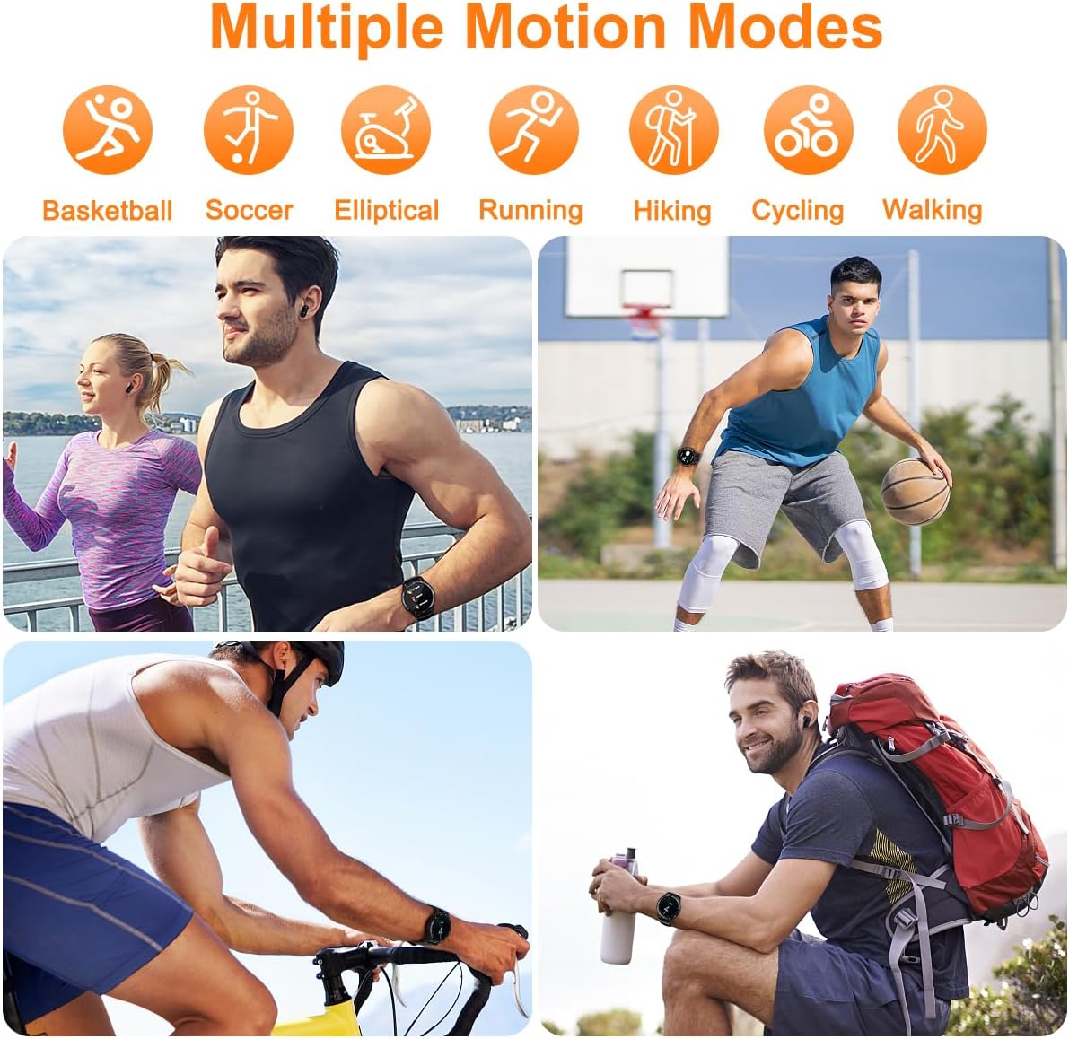 • Smart Watch with Earbuds, 1.32 Inch Round Fitness Watch X7, 2 in 1 Bluetooth Watch with Step,Calories,Sleep Monitor,Heart Rate Blood Pressu-re Monitor for iOS & Android