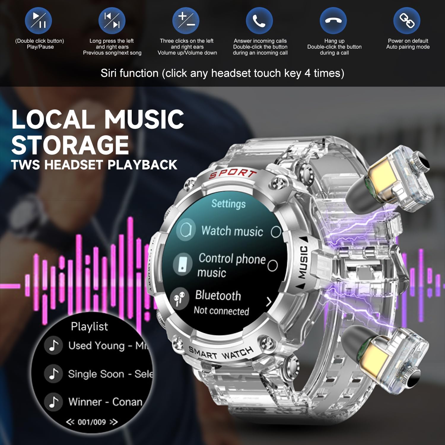 Smartwatch with Earbuds Bluetooth Fitness Tracker Smart watch Man